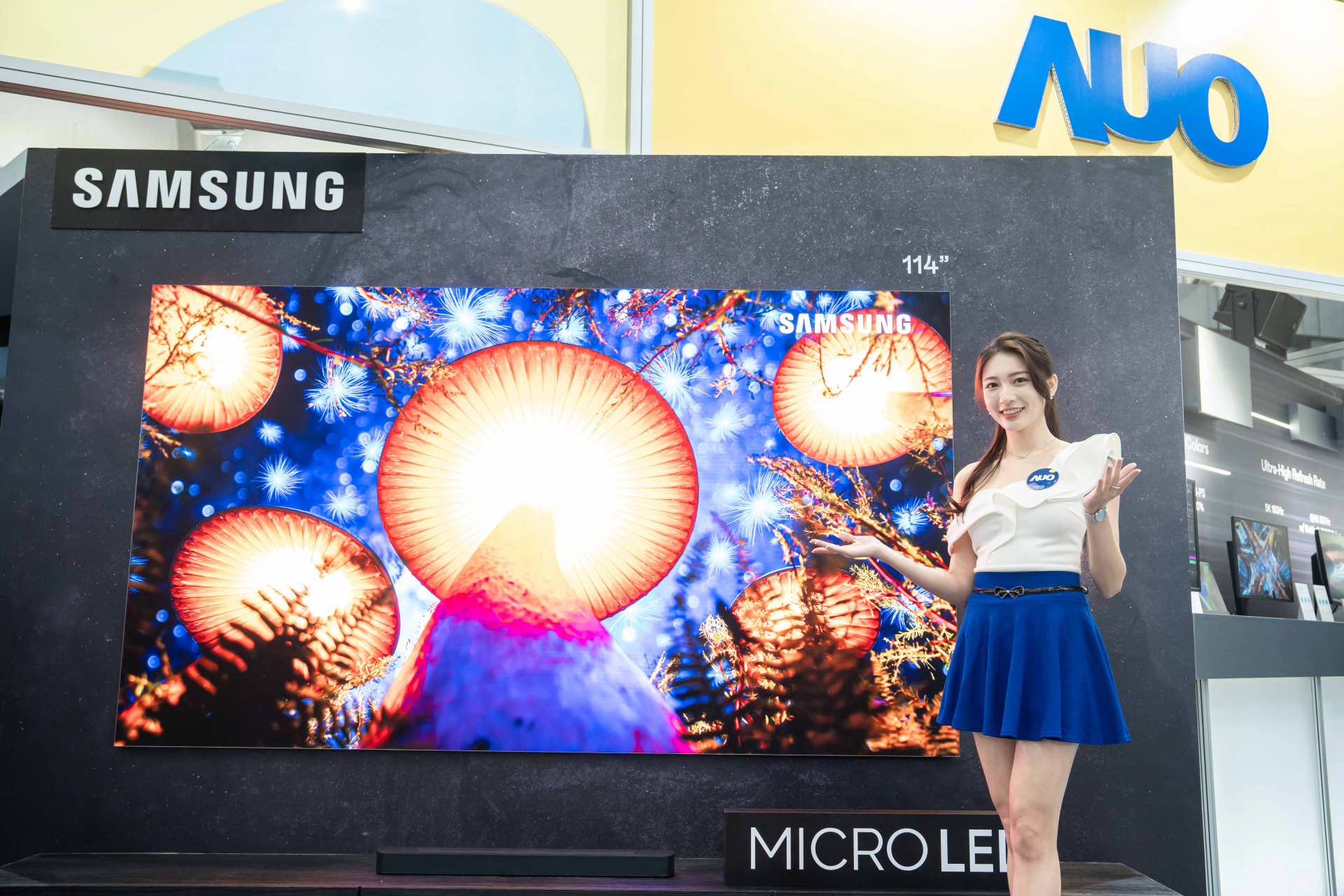 Micro LED顯示技術走入商品化,適應多元型態之顯示應用優勢,今年首度攜手客戶展示市場實績,包含:由友達與品牌客戶研發全球最大單一模組42吋Micro LED顯示器拼接而成的127吋電視,顯示亮度高達1000nits;與三星電子Samsung合作全系列Micro LED電視,採用友達Micro LED背板技術與無邊框設計,發揮無限拼接優勢。以及,研發全球最薄首款17.3吋雙面透明Micro LED顯示器,可在同一螢幕之雙邊投射不同資訊,創造獨特的「透明化」互動體驗。