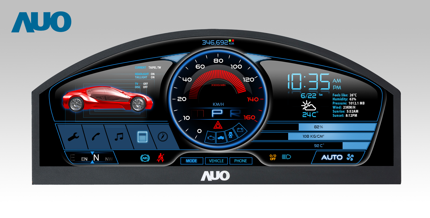 开云电竞 12.3吋超高解析异型切割车用面板,拥有流线外观及精细画质