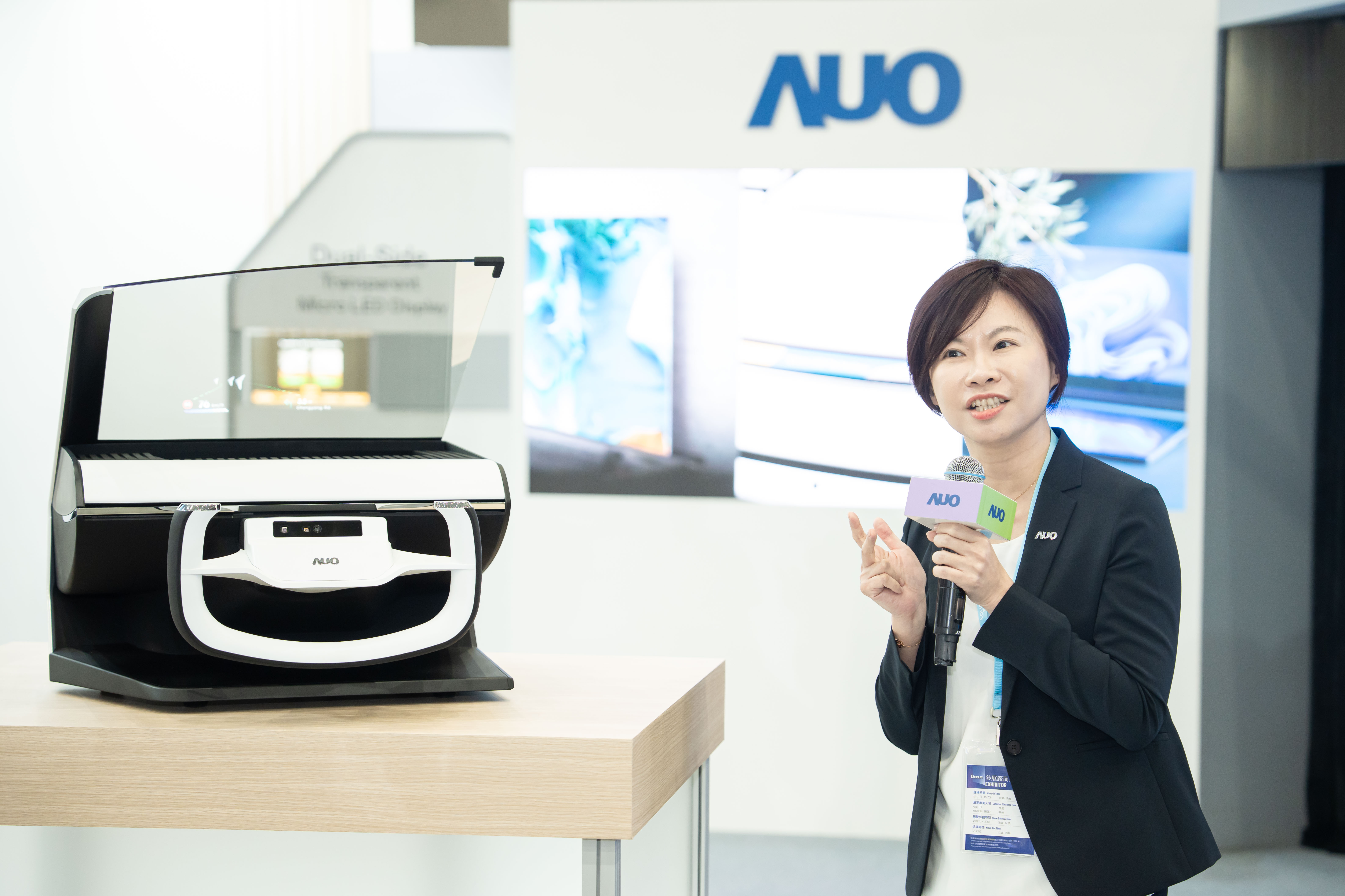 Micro LED顯示技術走入商品化,適應多元型態之顯示應用優勢,今年首度攜手客戶展示市場實績,包含:由友達與品牌客戶研發全球最大單一模組42吋Micro LED顯示器拼接而成的127吋電視,顯示亮度高達1000nits;與三星電子Samsung合作全系列Micro LED電視,採用友達Micro LED背板技術與無邊框設計,發揮無限拼接優勢。以及,研發全球最薄首款17.3吋雙面透明Micro LED顯示器,可在同一螢幕之雙邊投射不同資訊,創造獨特的「透明化」互動體驗。